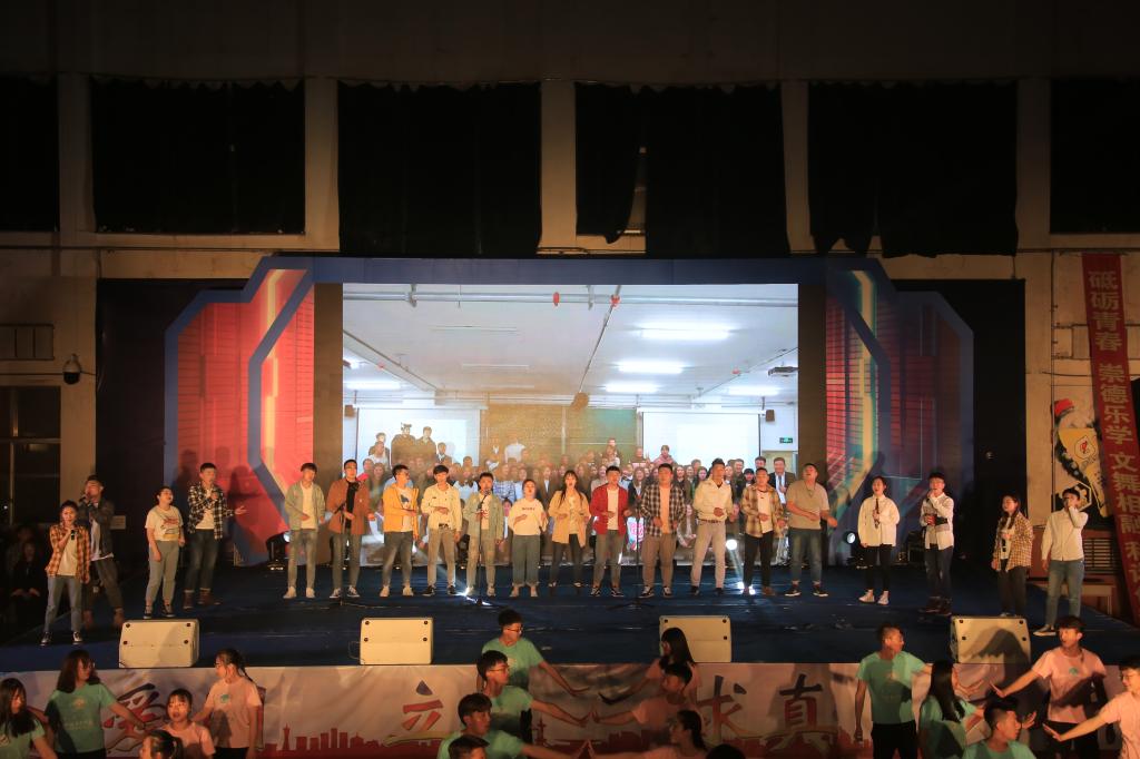 本场晚会由筑梦新时代、忆激情岁月、青春心向党三个篇章构成,演员是来自校学生会、学生榜样代表、民兵应急营、党员先锋站、“青马班”、校园十佳歌手、贝博优秀运动员、青年志愿者代表、各学院学生会代表、贝博全体团干部以及各学院270余名学生,载歌载舞共同庆祝青年人的节日。