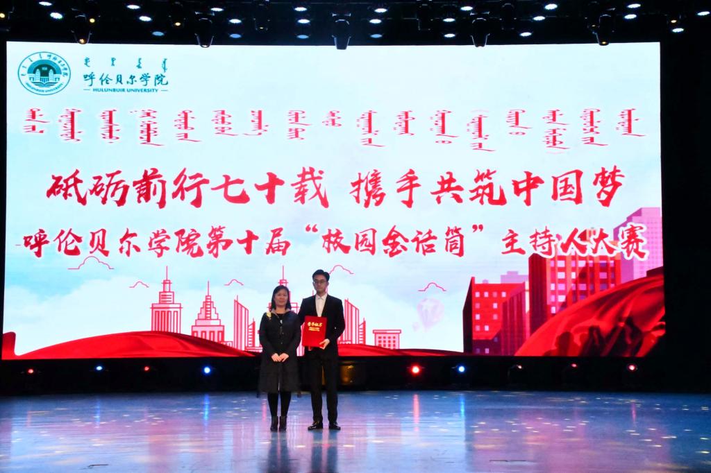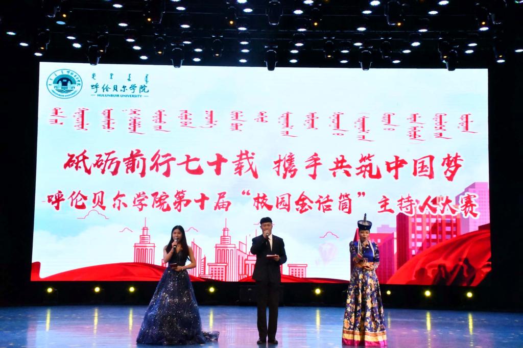 3月23日下午,以“砥砺前行七十载,携手共筑中国梦”为主题的第十届“校园金话筒”主持人大赛在艺术楼演播厅圆满落幕。文学院学工办主任朱艳、校团委宣传部部长杨巧智、文学院教师娜布其、音乐与舞蹈学院辅导员白音吉呼楞、校团委大学生素质拓展中心指导教师李晨出席比赛并担任评委。