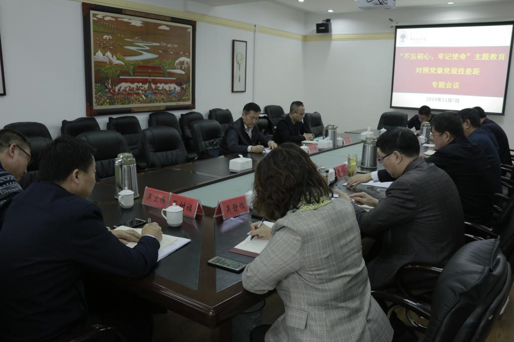 11月7日下午,学校党委在逸夫楼413会议室召开“不忘初心、牢记使命”主题教育对照党章党规找差距专题会议,自治区党委主题教育第三巡回指导组副组长田利民、组员张晓东到会指导,校党委班子成员参加会议,会议由党委书记王广利主持。