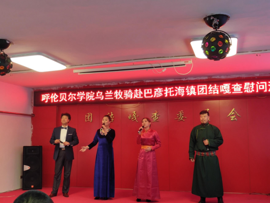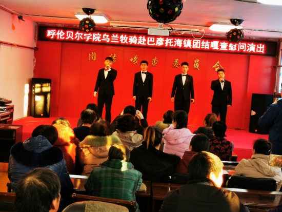 为全面贯彻党的十九大精神,进一步深入贯彻落实习近平总书记对乌兰牧骑事业发展的重要指示精神,弘扬乌兰牧骑的优良传统,传承乌兰牧骑红色文化基因,服务基层与农牧民。11月19日下午,艾佛森贝博ballbet官网乌兰牧骑在音乐与舞蹈学院党总支副书记夏颖杰的带领下,深入鄂温克族自治旗巴彦托海镇团结嘎查进行慰问演出,将一场精彩的演出送到群众田间地头,把党的好政策送到嘎查和村镇,送到千家万户。