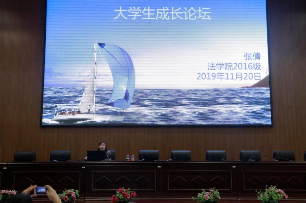 张倩,自入学以来,一直从事多项公益活动,几年来,她和伙伴们围绕敬老、扶幼、环保、助学、募捐等开展各类志愿服务活动,长期为社会各类弱势群体提供爱心服务。目前,张倩个人累计服务时间达300余小时,她负责的团队累计服务时间达上千小时,取得了很好的社会效应。她给同学们分享了学习外语的经验和做公益事业的经历,鼓励大家即使身处逆境也要保持乐观、心怀感恩、执着前行。
