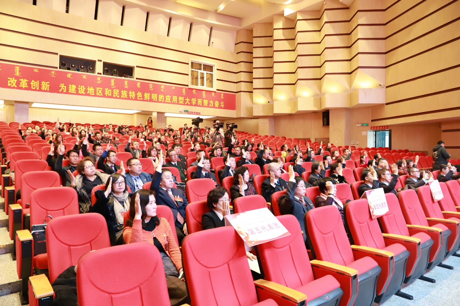 大会号召,全校各级党组织、全体共产党员和广大师生员工要紧密团结在以习近平同志为核心的党中央周围,在新一届学校党委的坚强领导下,凝心聚力、团结拼搏、改革创新、追求卓越,激发新担当、展现新作为,为建设地区和民族特色鲜明的应用型大学而努力奋斗!