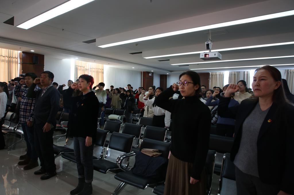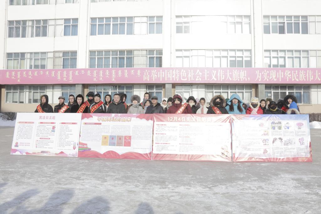 同时,法学院包来福老师和2018级法学专业的同学们到海拉尔区政府参加了“宪法宣传周”启动仪式暨宪法宣誓活动。包来福老师在活动现场开展了以“宪法讲解”为主题的讲座,对《中华人民共和国宪法》法律条文的内容进行讲解,用生活中实例与宪法讲解相结合,让大家对宪法有了更深刻的认识。