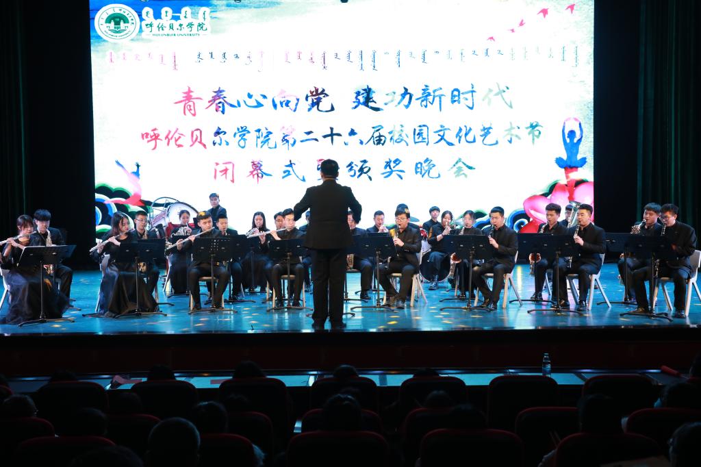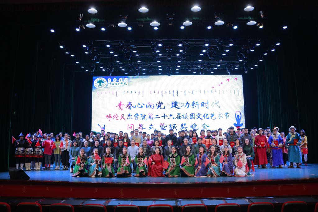 本次晚会分为三个篇章,分别为“奋斗•青春如歌”、“牢记•初心使命”、“聚力•再谱华章”,展示了呼院师生积极进取、敢为人先的追梦历程。晚会上对在第二十六届校园文化艺术节期间积极参与各项活动和取得优异成绩的团体和个人进行了隆重的表彰。呼院学子用对艺术的热情抒发勤奋进取的斗志,高扬青春的风帆,展现出靓丽风采!晚会的最后,全场师生挥舞红旗高声齐唱《歌唱祖国》,向伟大的祖国致敬,用歌声祝福祖国繁荣昌盛。