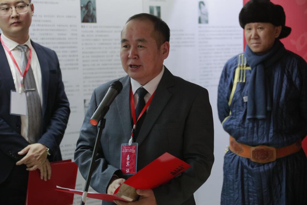 来自蒙古国乌兰巴托的国际蒙古文书法协会总秘书长达·钢巴特尔致辞。他表示,希望这样的活动以后在蒙古国的各个市、地区及在内蒙古的各个旗市区都能广泛开展。布里亚特国际大学东方学院教授瓦西里瓦·杜贵玛在致辞中表示,蒙古文蕴含着古老的草原民族文化,需要我们继承发扬。