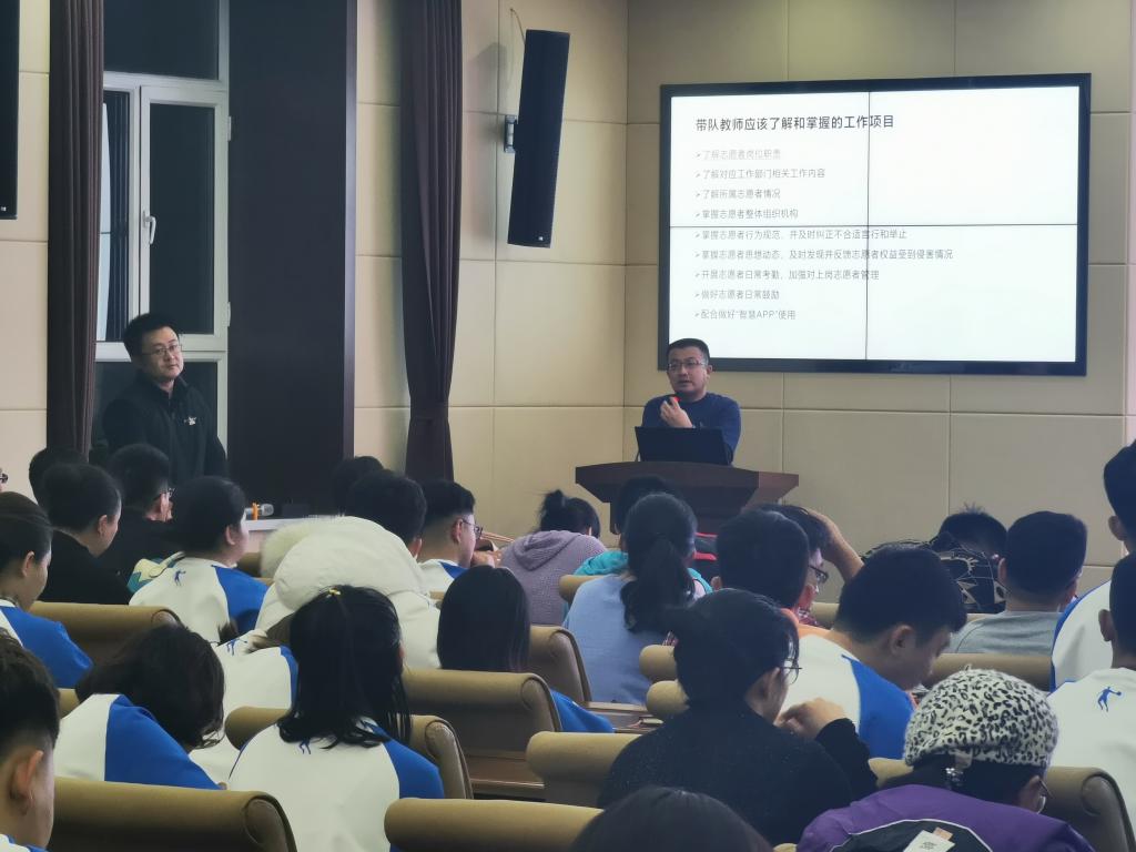 随后呼伦贝市团委副书记、“十四冬”呼伦贝尔执委会志愿者工作服务部副部长张磊围绕志愿者工作项目、对接方式和梯队管理概述、工作流程、志愿者日常行为规范等内容进行了培训。