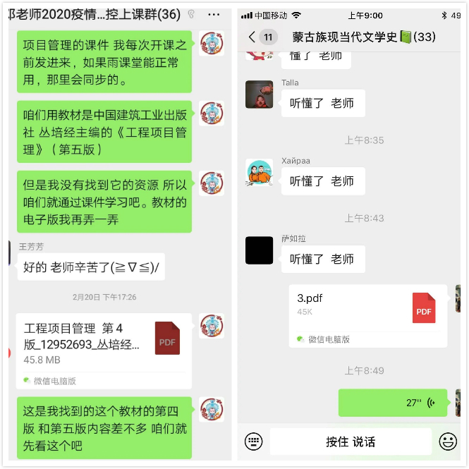 领导重视,扎实推进。为保证线上教学的顺利开展,2月18日,王曙光校长召开了校长办公会,对延期开学期间网络教学工作从强化主体责任、保证教学质量、关心关爱学生、保障教学设备等方面进行了再部署,再强调,要求进一步细化开学前后的各种教学预案。教务处根据会议精神及时发布了《关于艾佛森贝博ballbet官网延期开学教学工作的补充说明》,将会议精神第一时间向教学院系传达并抓好落实。在开学前一周教务处下发了关于上好第一课的通知,要求教学院系确保将网络教学的要求传达给每一位学生,向学生发布任课教师课程群二维码及教师联系方式,确保学生做好线上授课的准备工作。
