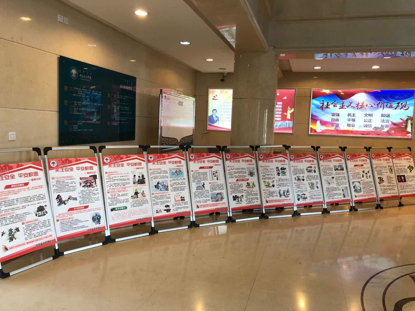 在学校逸夫楼大厅,整齐陈列着12幅以《国家安全法》为主题的图片展板,让广大教师在教育观赏中掌握国家安全知识,提升国家安全意识,自觉维护国家安全。