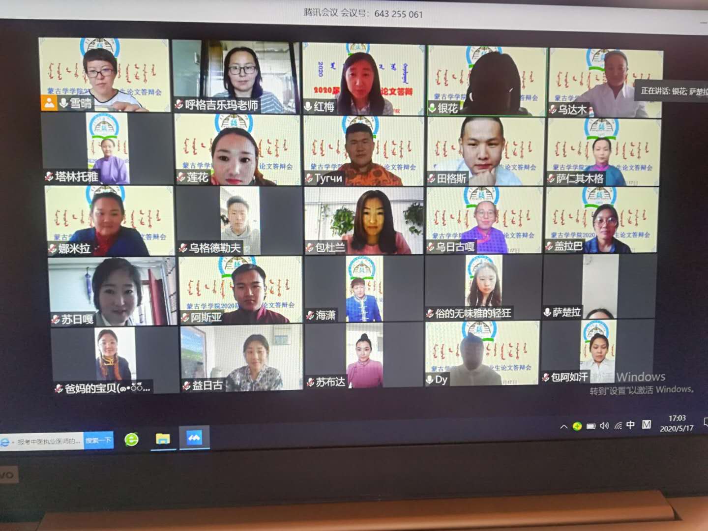 5月20日2020届毕业论文(设计)查重工作结束后,蒙古学学院、文学院、旅游地理学院等二级学院以线上答辩形式陆续开展并圆满完成毕业论文(设计)答辩工作。此次“线上答辩”工作有以下几个特点:一是指导毕业论文(设计)的教师和学生对此次答辩工作十分重视。在答辩前进行了充分的准备,确保答辩工作顺利进行。二是各组答辩教师都能以认真严谨的态度逐一进行点评和提问,全面考察学生在论文撰写过程中的理论知识、研究成果及学术运用能力。答辩教师在指出论文亮点和不足的同时,就论文中存在的问题提出进一步修改意见和建议。三是学生态度认真,准备充分,严格按照学校毕业论文(设计)答辩环节完成答辩任务。学生通过在线演示ppt,阐述论文的选题依据、基本思路、创新点等对自己的论文进行了全面陈述,并逐一回答评委老师提出的问题。