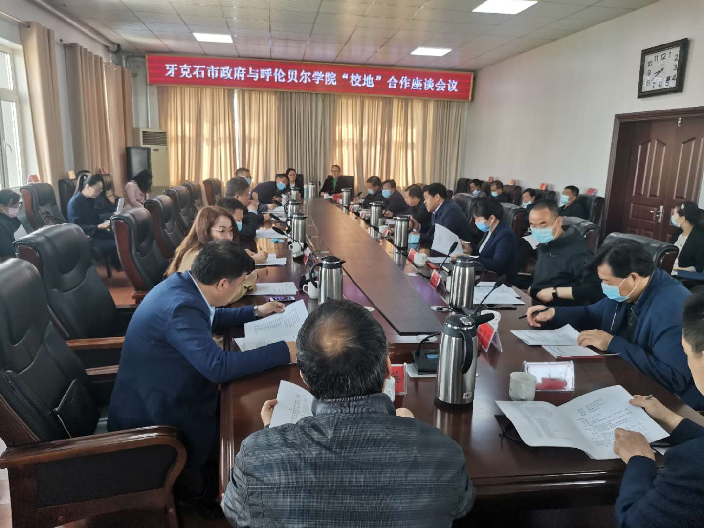 5月26日上午,由贝博校长王曙光、副校长孟祥宏带队,在相关职能部门及科技创新团队负责人陪同下,赴牙克石人民政府就校地合作相关事宜进行洽谈。牙克石市长臧著强,副市长张艳华、副市长孟达英带领牙克石各科局、企业负责人参加了会见。