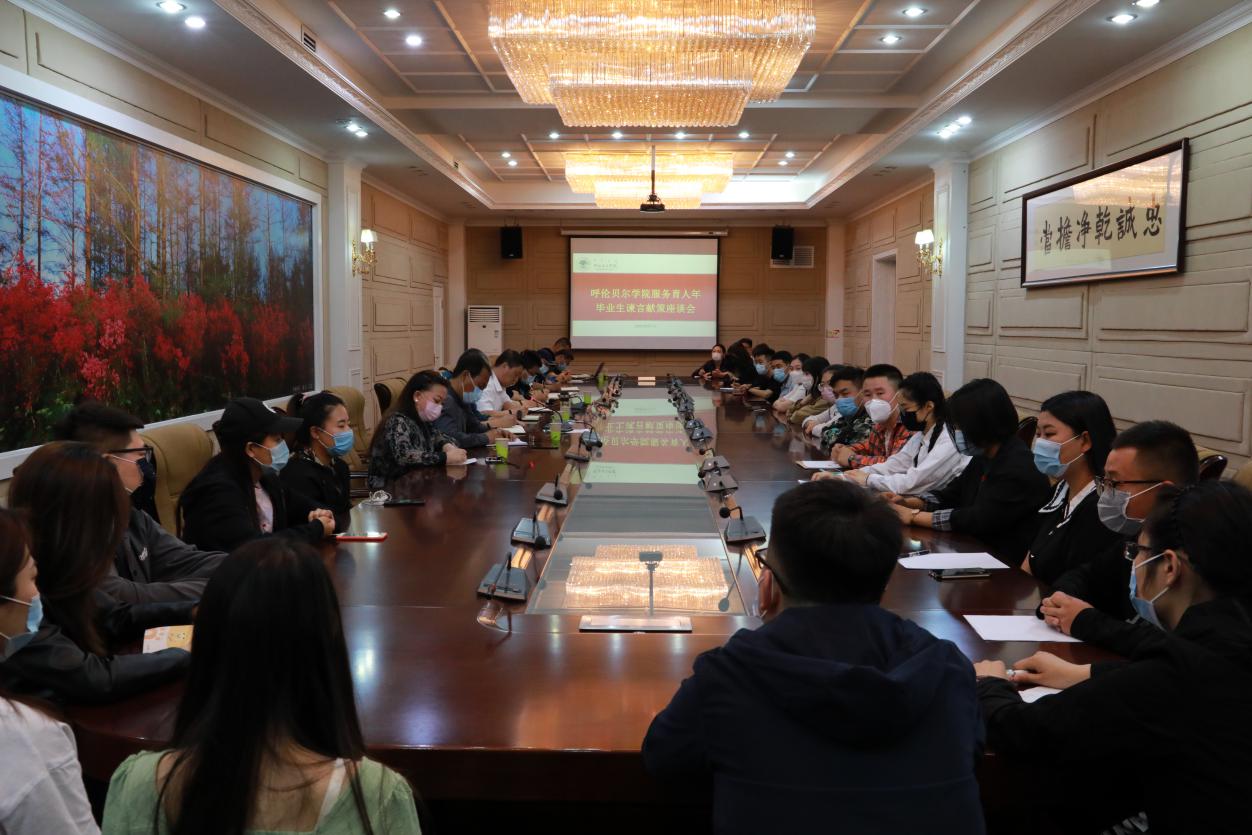6月5日下午,在图书馆三楼报告厅,学校组织召开服务育人年 “毕业生谏言献策”座谈会,校党委委员、副校长乌云达来,党委委员、副校长孟祥宏,学生工作处、教务处、后勤管理处、校园安全管理处、团委、鹏泰物业公司等部门负责人及各学院毕业生代表参加了座谈会。座谈会由乌云达来副校长主持。