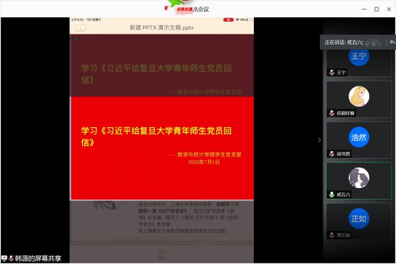 7月1日,各学院学生党支部、大学生党员先锋站通过云端学习、讨论、座谈等多种形式学习并热议习近平总书记给复旦大学青年师生党员回信精神,共同庆祝中国共产党成立99周年。