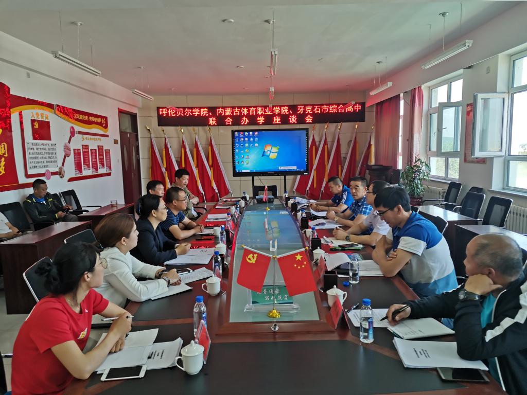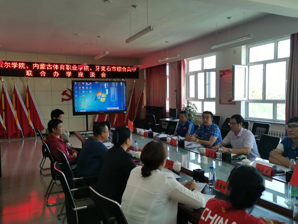 7月7日上午,体育学院院长李晓峰一行四人赴牙克石市综合高中,参加“艾佛森贝博ballbet官网、内蒙古体育职业学院、牙克石市综合高中联合办学座谈会”。