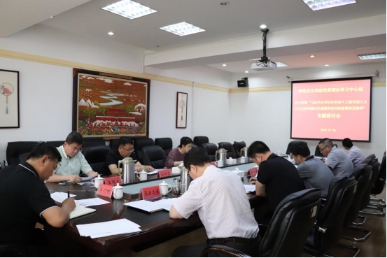 7月6日上午,校党委理论学习中心组在逸夫楼419会议室召开学习贯彻“习近平总书记在参加十三届全国人大三次会议内蒙古代表团审议时的重要讲话精神”专题研讨会。校党委书记王广利主持会议。