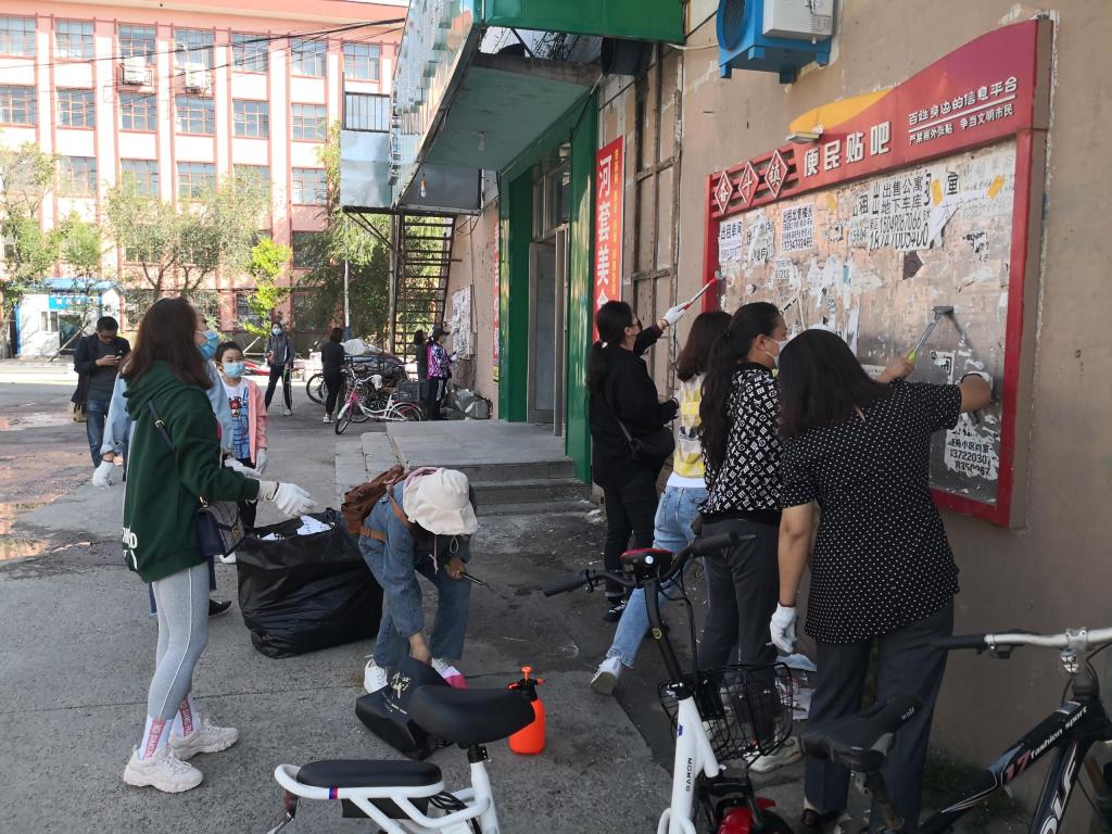 在卫生大扫除过程中,广大党员发挥了不怕苦不怕累的精神,不放过每一处卫生死角,和社区干部团结协作,对小二楼附近的垃圾、杂草、墙面小广告等进行了清理。