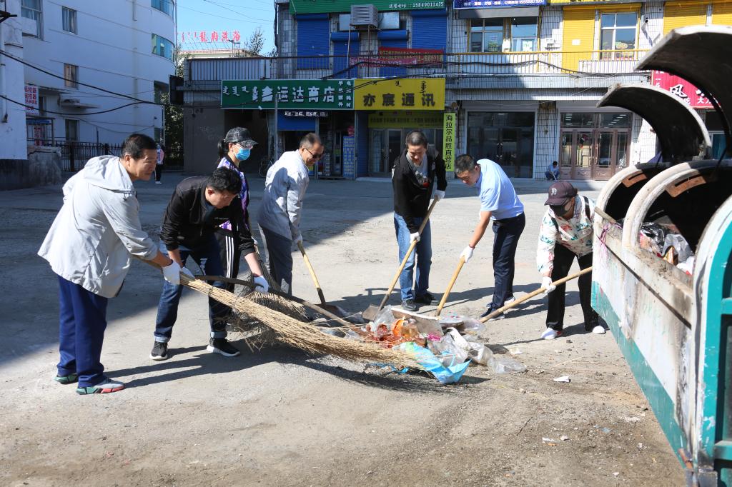 为发挥党员先锋模范作用,助力呼伦贝尔市创建国家级文明城市,8月26日上午,贝博机关党委24个党支部联合奋斗镇学院社区共同开展“创城共建”卫生大扫除志愿服务活动。