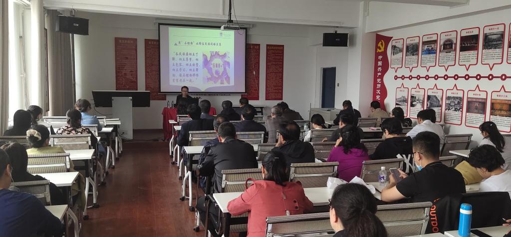 马克思主义学院讲师程欣以广阔的政治视野和深厚的理论功底围绕“习近平新时代民族团结思想”这一主题,从习近平新时代民族团结思想的背景、实践基础、主要内容及“五个认同”、制度的优势五个方面进行了深入浅出的解读,为大家进一步做好民族团结进步教育工作开拓了思路、提供了指导。