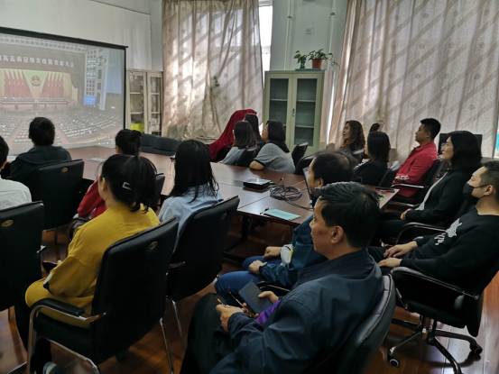 10时,学校领导班子、职能部门党员干部以及二级学院师生分别在逸夫楼419会议室、崇文楼A座201会议室、各部门、各二级学院会议室、教室、宿舍等地通过多种形式准时收听收看了大会盛况。