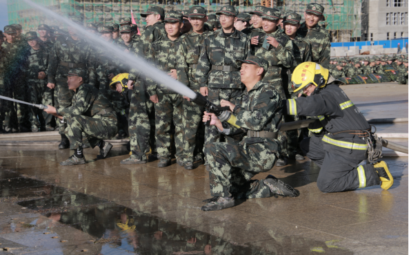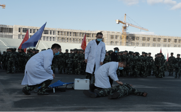 首先,模拟军训现场发生爆炸事故,学校领导下达启动紧急疏散应急预案命令,校园安全管理处、学生工作处、医务人员、安保人员迅速到达现场维护秩序,在军训总指挥的调度下进行紧急救治,并快速有序疏导学生撤离军训场地,短短几分钟3462名受训学生安全撤离。