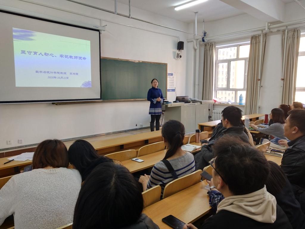 10月21日下午,在崇文楼B422室,人事处(教师发展中心)组织开展贝博2020年度新教师入职系列培训,本次培训邀请到贝博数学与统计学院宋旭霞教授为大家做了主题为“坚守育人初心、牢记教师使命”的讲座。