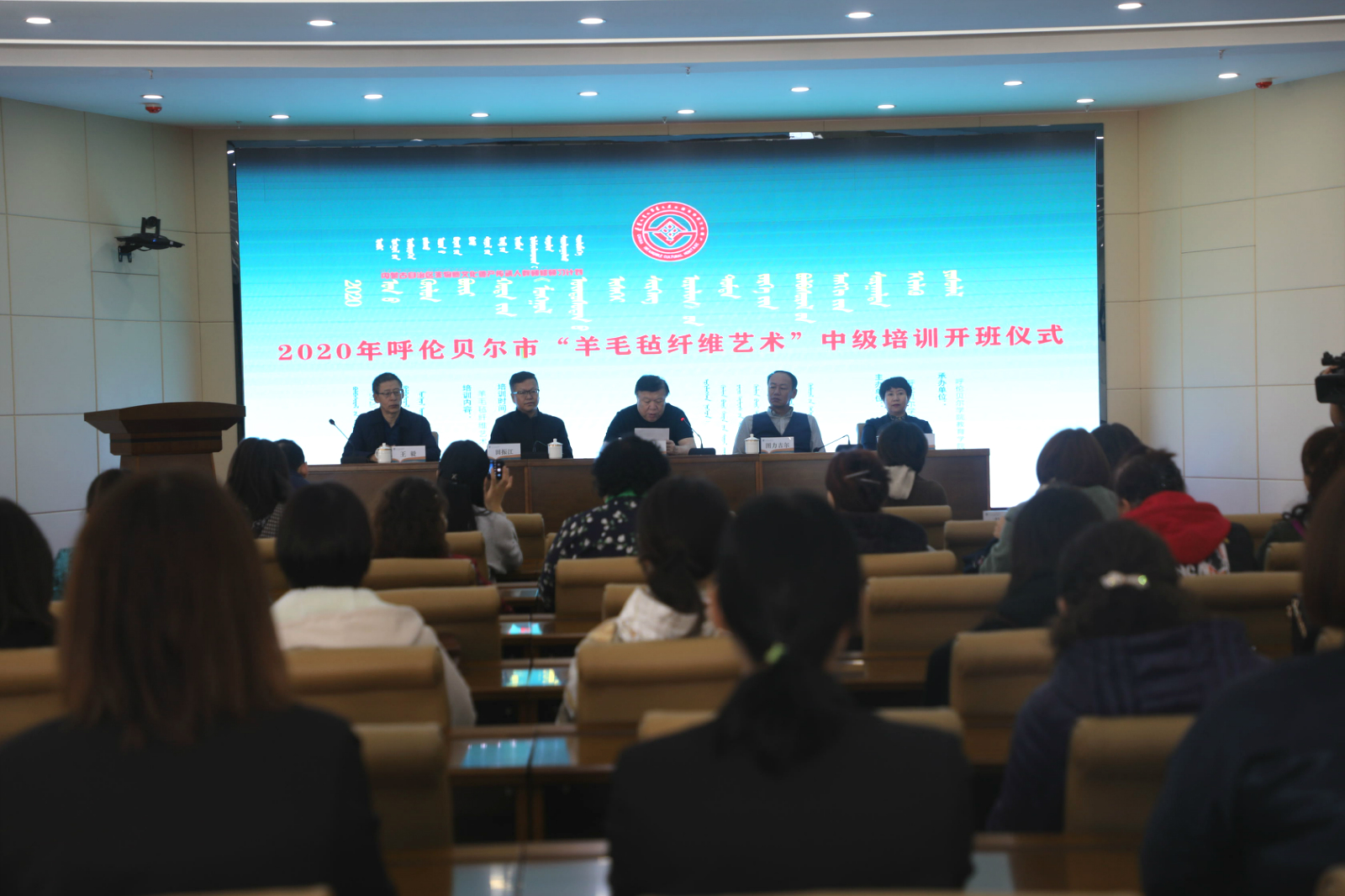 为提高非物质文化遗产传承人群的当代实践水平和传承能力,秉持“强基础、拓眼界”的原则,按照“自治区非遗传承人群研培计划”要求,10月22日上午,由呼伦贝尔市文化旅游广电局和艾佛森贝博ballbet官网主办,由艾佛森贝博ballbet官网教育学院承办的2020年呼伦贝尔市“羊毛毡纤维艺术”中级培训开班仪式如期举行。呼伦贝尔市文化旅游广电局党组成员、副局长包海明,非遗科科长李颖婷,呼伦贝尔市群众艺术馆副馆长、美术家协会主席图力古尔,蒙古国纤维艺术家钢胡亚哥,中国纤维艺术手作人谢佳宁,内蒙古农业大学毡艺教师郝水菊,鄂温克旗非遗传承人艾吉玛,及贝博科学技术处处长田振江、教育学院领导班子成员出席了本次开班仪式,院长王毅主持仪式。