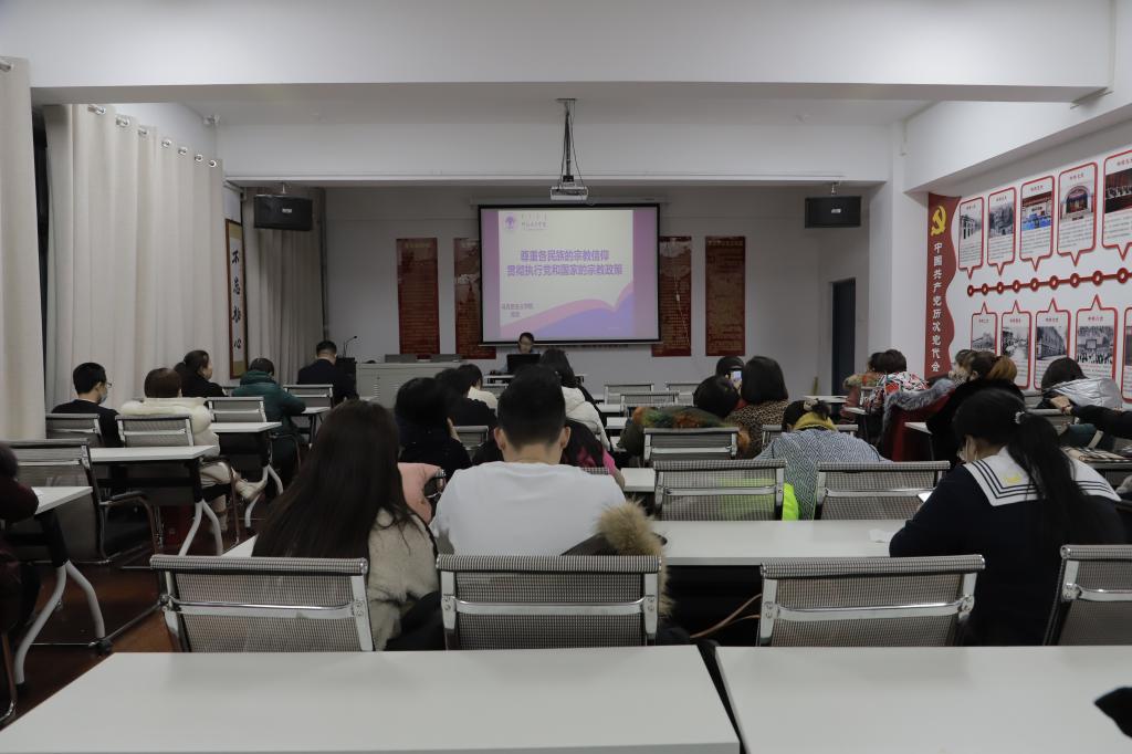 马克思主义学院程欣老师以“尊重各民族的宗教信仰 贯彻执行党和国家的宗教政策”为题,从马克思主义宗教理论、我国宗教概况、贯彻执行党和国家的宗教政策三个方面,介绍了我国宗教概况,分析了当前宗教工作形势,讲解了宗教相关知识、宗教工作相关政策、法律、法规,进一步提高了参训人员对宗教工作的认识,提升了做好新形势下学校宗教工作的理论素养。