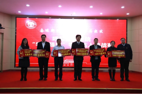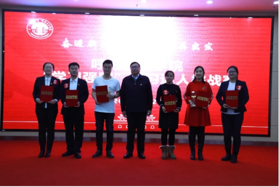 在颁奖环节,学校党委副书记张国栋通报了贝博在“学习强国”内蒙古学习平台表彰活动中的获奖情况,宣读了贝博2020年“学习强国”学习平台先进组织和先进个人的表彰决定及获奖名单,并为先进学习组织代表颁发了荣誉证书和读书卡。与会领导为获得“学习强国”学习平台先进学习个人的14名先进代表颁发了荣誉证书。同时也为本次比赛获奖集体和个人颁发了奖杯和证书。