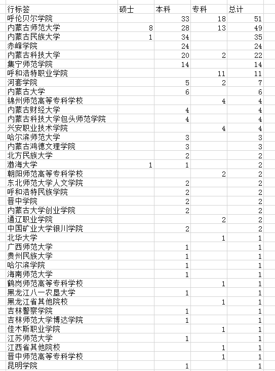 按照内蒙古自治区教育厅、财政厅、人事厅、编办《关于做好2020年内蒙古自治区特设岗位专项计划实施工作的通知》(内教教师字〔2020〕67号)要求,贝博大力宣传并积极组织毕业生参加考试。经过笔试、面试、体检等招聘程序,在各盟市教育行政部门根据综合确定拟聘用的298名“特岗教师”人选中贝博有51名本专科毕业生进入公示阶段,在进入公示阶段的全国39所高校中位列首位。其中,在进入公示阶段的51名学生中中国语言文学类专业学生34人、思想政治教育专业13人、历史学4人。