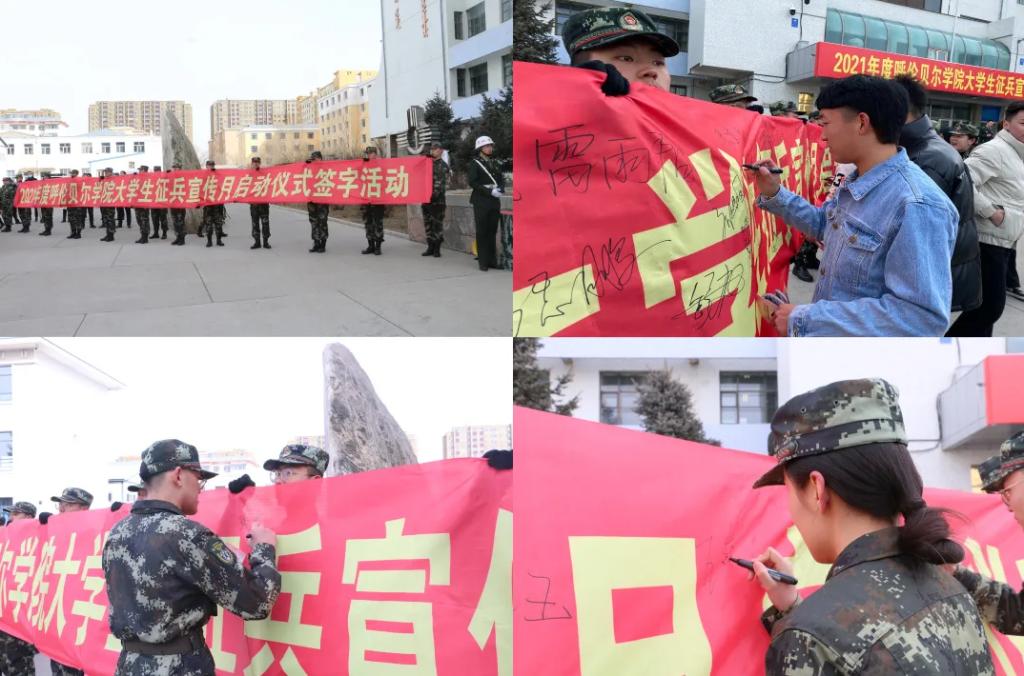 为帮助广大毕业生、在校生了解掌握应征入伍的相关政策,加强宣传力度,3月21日,学生工作处武装部在综合楼前举行征兵宣传月启动仪式。呼伦贝尔市军分区动员处处长张树宏,海拉尔区委常委、武装部政委高树法,军分区动员处参谋周龙,学生工作处处长、武装部部长李健,副处长王晓芳出席了本次活动。各院两千余人参加。
