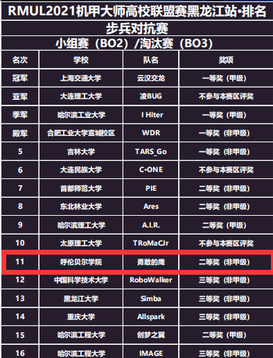 3月26日至28日,由共青团中央举办的第二十届全国大学生机器人大赛RoboMaster2021机甲大师高校联盟赛(黑龙江站)在哈尔滨工程大学热烈开幕。本次比赛吸引了上海交通大学、重庆大学、哈尔滨工业大学、东北林业大学等来自全国多省的16所高校30余支队伍,近300名学生参赛。贝博代表队——“勇敢的鹰”战队获得步兵对抗项目非甲级参赛队二等奖的好成绩。