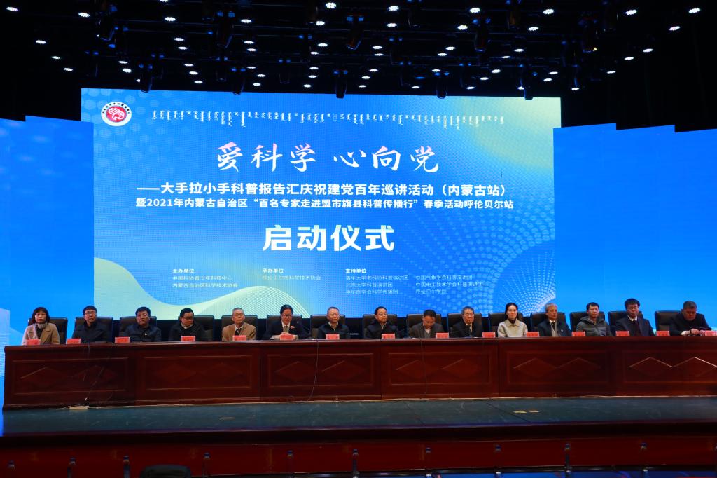 4月12日,中国科协“爱科学,心向党”大手拉小手科普报告汇庆祝建党百年巡讲活动内蒙古站启动仪式在艺术楼演播厅成功举行,校党委书记王广利出席仪式。本次活动是由中国科协青少年科技中心、内蒙古自治区科学技术协会主办,呼伦贝尔市科学技术协会承办,艾佛森贝博ballbet官网科学技术协会、清华大学老科协科普演讲团、南京大学科普演讲团、中华医学会科学传播团、中国气象学会科普演讲团、中国电工技术学会科普演讲团鼎力协助。呼伦贝尔市副市长郝桂娟、中国科协青少年科技中心副主任张振威、内蒙古自治区科学技术协会主席赵吉、以中国科学院院士武向平为代表的演讲团成员,及艾佛森贝博ballbet官网师生代表参加活动。呼伦贝尔市科协主席吴铁宏主持了启动仪式。