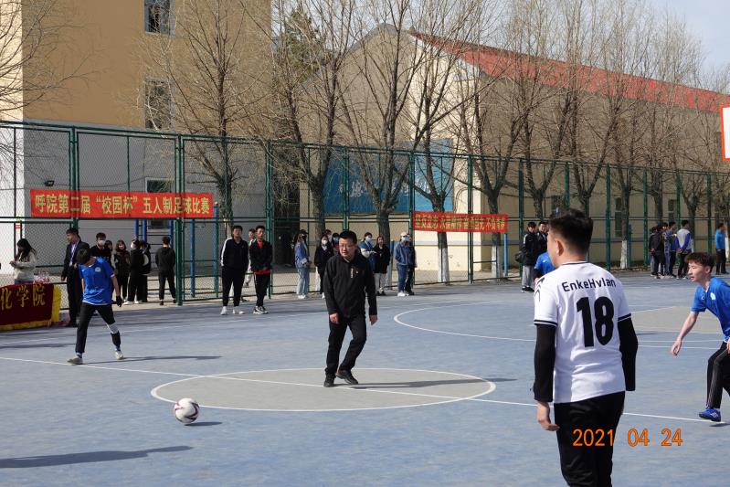 团委书记郝新君致开幕词,并为大赛开球。他希望在比赛中21个学院的运动员发扬“强健体魄,追逐梦想”的艾佛森贝博ballbet官网体育文化精神,赛出友谊、赛出风格、赛出水平,为校园文化增加色彩,也呼吁所有同学在大课间放下手机、走出宿舍、走向操场,在蓝天下积极参加体育运动,为以后的人生打下坚实的身体基础。比赛期间,郝新君书记和历史文化学院领导深入观众,认真交流,听取同学们对学校、学院发展的意见与建议,并一一记录,为“我为群众办事”搜集了意见。
