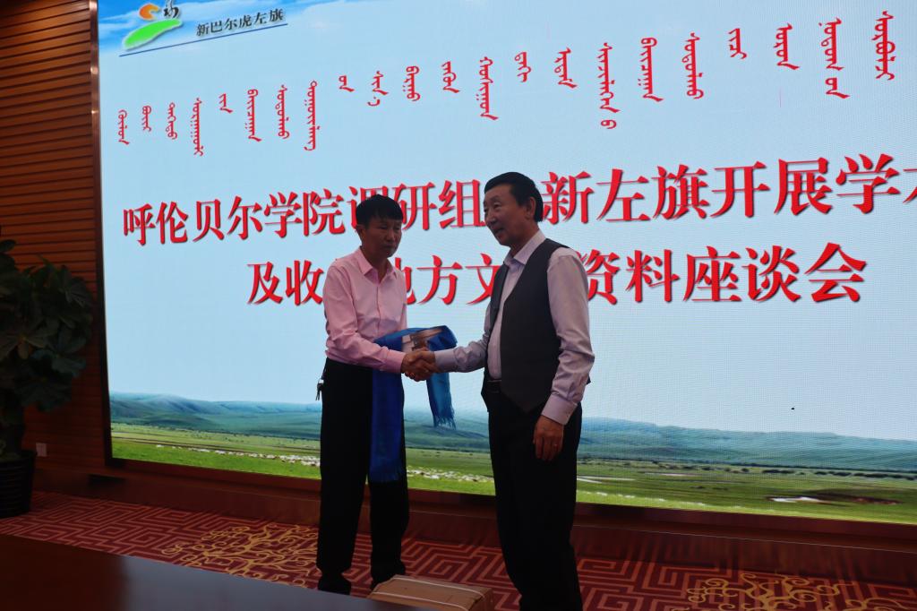 调研组在旗市政协领导和文史委员会同志们的大力支持下,收集了蒙汉文地方性文史资料200余册,并向其赠送了研究中心近几年出版的艾佛森贝博ballbet官网民族历史文化研究丛书等学术成果,拜访慰问了相关本土专家和文化界名人,还观看了当地的文史馆、博物馆和民族团结进步展览等。
