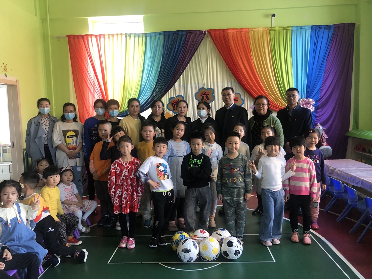 签约仪式结束后,两个支部的党员参观了社区幼儿园,为幼儿园孩子送去“六一”儿童节的祝福,并赠送了足球。