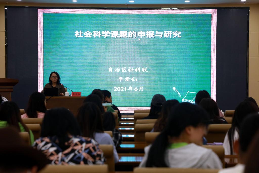 朱晓俊副主席、李爱仙部长在崇文楼A201为贝博师生代表做《面向现代化的“十四五发展战略”》和《社会科学课题的申报和研究》专题讲座。