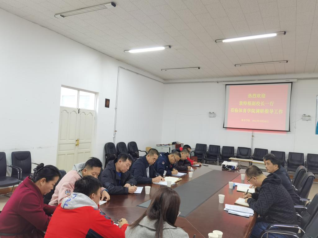 10月26日上午,校党委委员、副校长敖特根深入体育学院调研指导工作。科学技术处处长田振江,学科建设办公室副主任李洋陪同。体育学院领导班子及环节干部参加了调研座谈会。