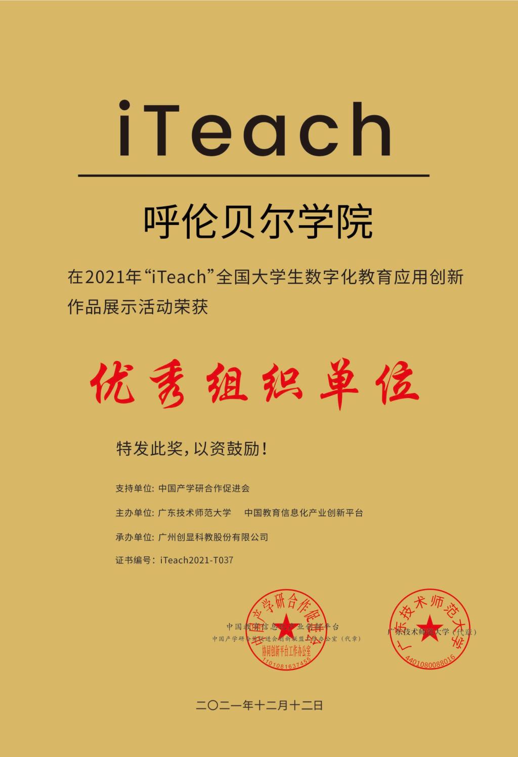 2021年12月,第五届“iTeach”全国大学生数字化教育应用创新大赛评审结果公布,贝博被大会主办方授予“优秀组织奖”,贝博学子喜获一等奖1项、二等奖8项、三等奖3项。