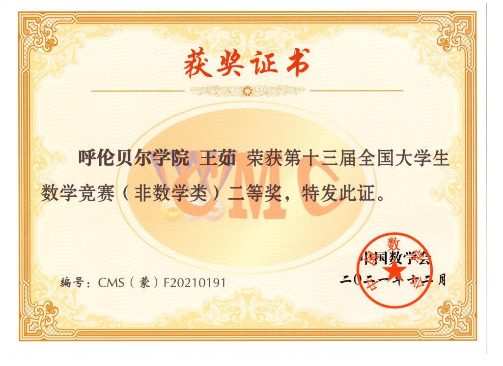 近日,2021年全国大学生数学竞赛结果揭晓,贝博学子在大赛中再创佳绩,共荣获12项自治区奖项,其中,数学专业组赛区一等奖1项、三等奖2项;非数学专业组赛区二等奖2项、三等奖7项。