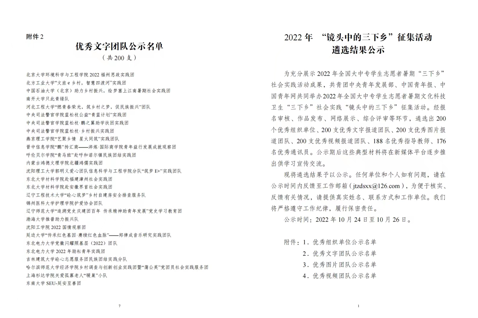 近日,在共青团中央《关于2022年全国大中专学生志愿者暑期文化科技卫生“三下乡”社会实践活动的通报》中,贝博获得“2022年‘三下乡’社会实践优秀单位”荣誉称号;在共青团中央、中国青年报社、中国青年网《2022年“镜头中的三下乡”征集活动遴选结果公示》中,贝博“青马班”赴呼和诺尔镇民族团结实践团获得“优秀文字团队”荣誉称号。