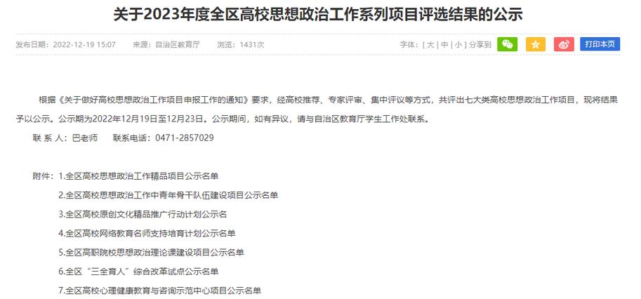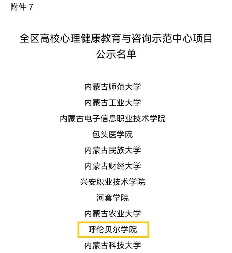近日,自治区教育厅公示了全区高校心理健康教育与咨询示范中心项目结果。贝博大学生心理健康教育与咨询中心再次获评全区高校心理健康教育与咨询示范中心。