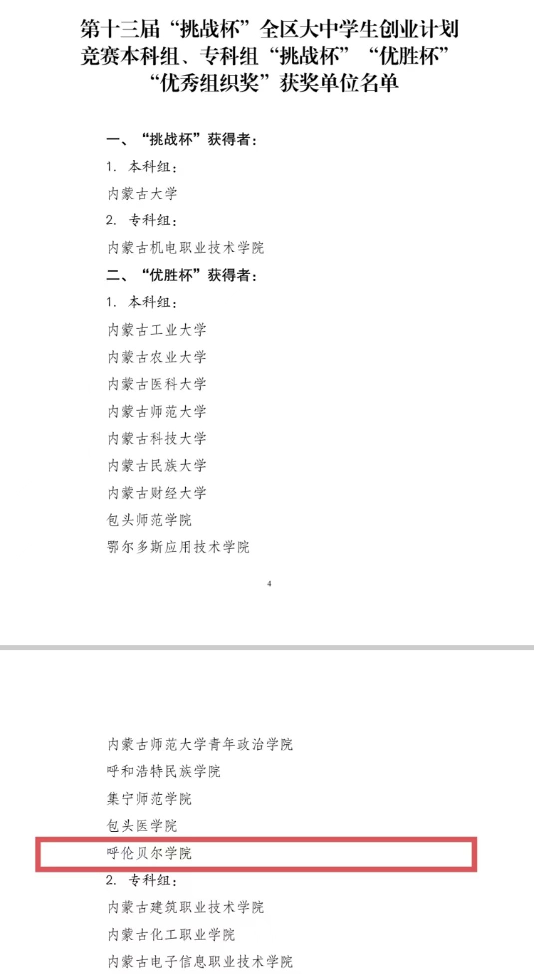 近日,第十三届“挑战杯”全区大中学生创业计划竞赛结果揭晓,贝博获得本科组“优胜杯”。《“点草成金”—呼伦贝尔地区新兴秸秆引领者》项目荣获全区特等奖,《一带一路 匠心蛋雕》《新型感温变色可降解地膜》等4个项目荣获全区一等奖,《琉行印象-哈尼卡纸艺微潮坊》《“以废治废”多功能的油菜秸秆基生物炭项目》等9个项目荣获全区二等奖,《“牧”名而来-草食家畜健康饮食配餐中心引领者》《“碧水守护者”-光催化剂》等13个项目荣获全区三等奖!获奖项目涉及科技创新和未来产业、乡村振兴和农业农村现代化、城市治理和公共服务、生态环保和可持续发展、文化创意和区域合作等五个赛道。