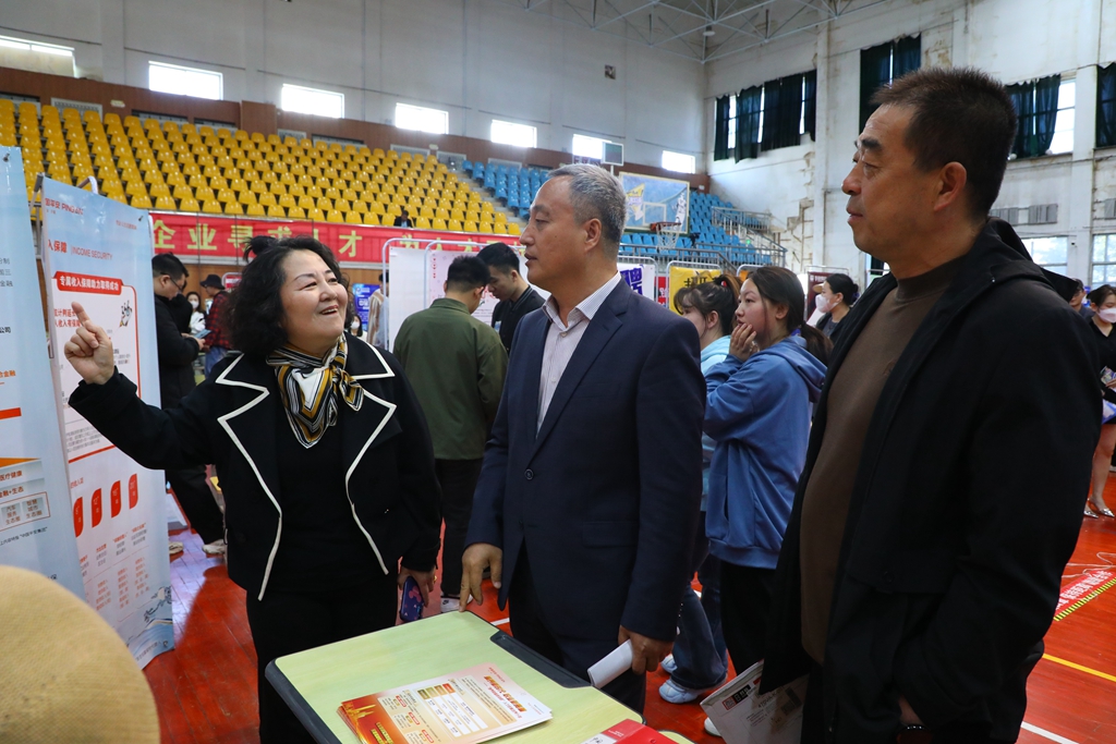 校党委委员、副校长李跃武在启动仪式上致辞,党委委员、副校长尹立军主持招聘会。呼伦贝尔市人力资源和社会保障局、呼伦贝尔市工商业联合会、呼伦贝尔职业技术学院、扎兰屯职业学院、满洲里俄语职业学院等单位相关负责同志参加了本次招聘会。