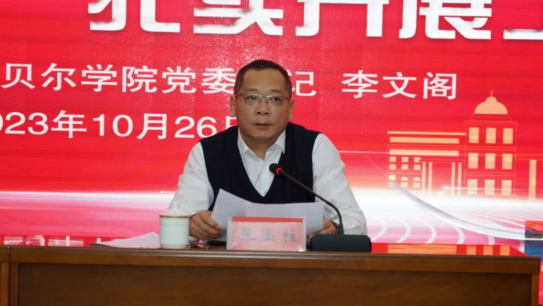 张玉柱要求,要把学习贯彻习近平新时代中国特色社会主义思想转化为坚定理想、锤炼党性和指导实践、推动工作的强大力量,使全校师生始终保持统一的思想、坚定的意志、协调的行动、强大的战斗力。
