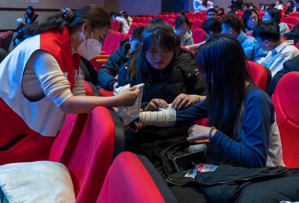 培训根据冬季运动会赛事的特点,详细地讲解了创伤救护,心肺复苏及气道异物梗阻等理论知识。理论培训后,为更好达到培训效果,组织志愿者利用人体模型进行心肺复苏,海姆立克急救法的实操演练,培训教师对志愿者的每一个动作进行规范细致的指导。理论、实操培训完毕后,对志愿者进行相关考核,考核合格者将获得“红十字救护员证”。