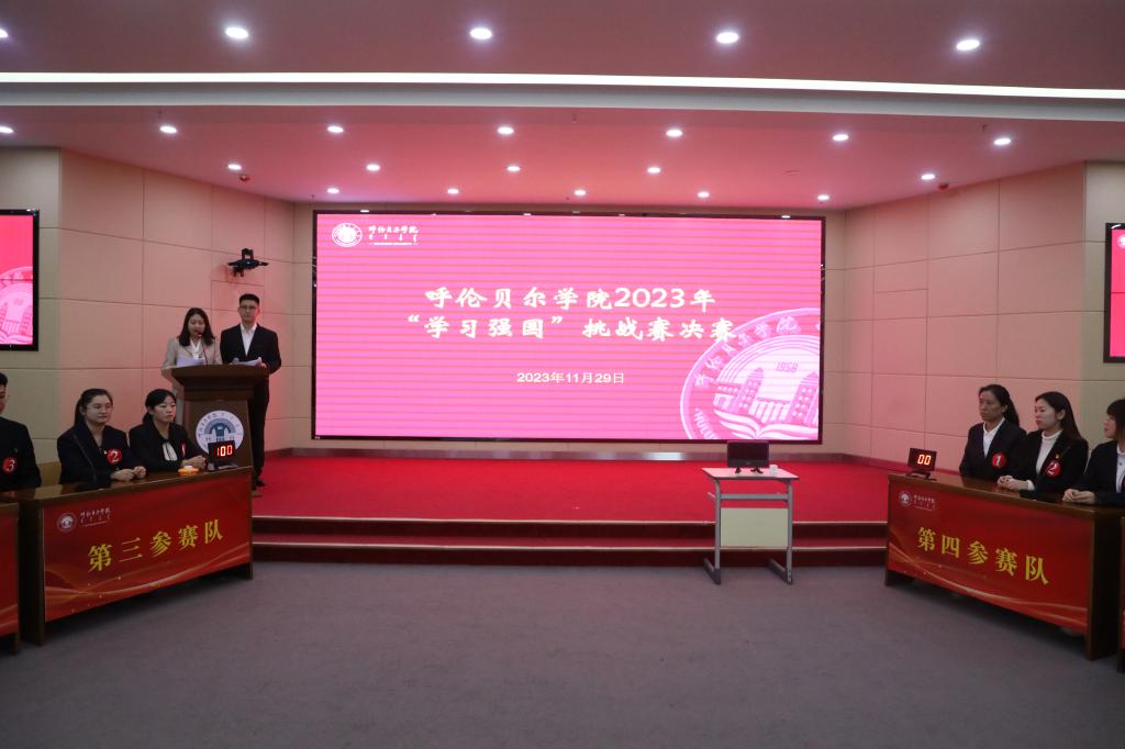 为进一步推动理论学习走深走实,不断扩大“学习强国”学习平台的覆盖面和参与度,激发学习热情,11月29日下午,在崇文楼A座201会议室,贝博举行“以赛促学强思想·以学促干求实效”—“学习强国”挑战赛决赛。校党委副书记张宏天,“学习强国”呼伦贝尔市学用管理专班负责人、市委宣传部理论科科长孔令强,“学习强国”呼伦贝尔市学用管理专班学用推广工作负责人肖洋,各学院、部门领导及参赛选手120余人观看了比赛。