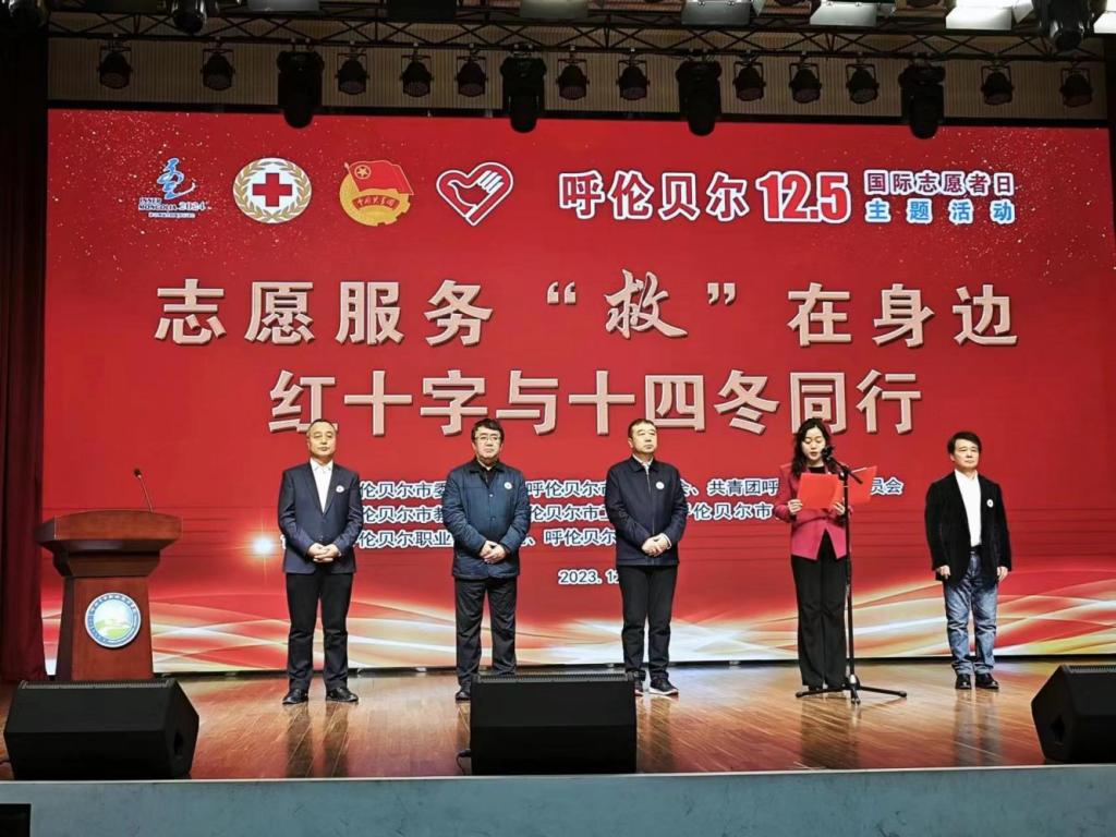 为纪念第38个国际志愿者日,助力呼伦贝尔市红十字会工作有序开展,12月5日,呼伦贝尔市红十字会联合呼伦贝尔市政府、呼伦贝尔市委宣传部、艾佛森贝博ballbet官网、呼伦贝尔职业技术学院等单位共同举行“志愿服务‘救’在身边 红十字与‘十四冬’同行”主题活动。贝博党委委员、副校长李跃武,学生工作处处长郝新君,团委书记王晓芳等应邀参加活动。