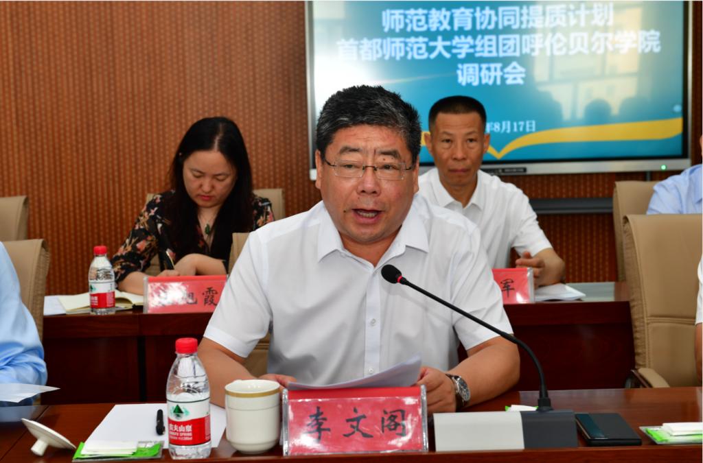 随后,在崇文楼A座501会议室,召开了师范教育协同提质计划首都师范大学组团艾佛森贝博ballbet官网调研会。校党委副书记、校长李文阁,校党委委员、副校长敖特根、李跃武、尹立军,以及学校相关职能部门负责人、师范专业学院院长参加调研会,调研会由尹立军副校长主持。会前,集体观看了《踔厉奋发新时代的艾佛森贝博ballbet官网》宣传片。