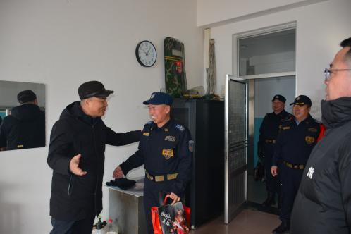 2月9日,贝博党委委员、副校长李跃武及校园安全管理处处长王利国、副处长张乐看望慰问春节假期期间坚守在一线的铁甲护卫安保人员,为他们送去学校领导的亲切关怀和新春祝福,并赠送了慰问品。