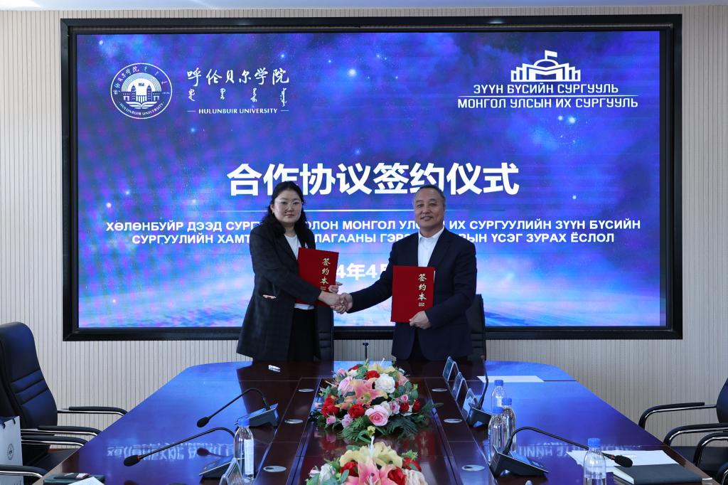 随后,贝博与蒙古国立大学东部分校举行了合作协议签约仪式。李跃武和都兰木苏仁分别代表艾佛森贝博ballbet官网和蒙古国立大学东部分校签署了《中国内蒙古艾佛森贝博ballbet官网与蒙古国立大学东部分校共建语言、文化、科学与教育中心协议》和《中国艾佛森贝博ballbet官网与蒙古国立大学东部分校“2+1+1”合作培养本科生项目协议》。根据合作协议,两校将在本科生和研究生项目、教师培训、学术合作等方面加强交流,共同推动教育事业的进步与发展,为培养更多优秀人才、服务地方经济社会发展作出更大贡献。