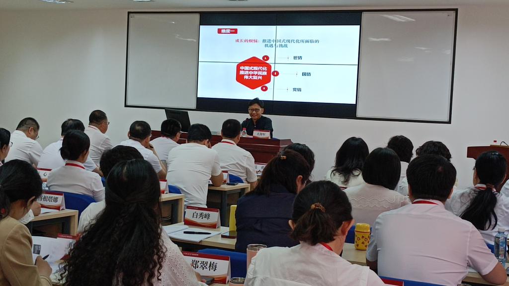 开班仪式后,中国人民大学中共党史党建研究院副院长王海军教授以“习近平新时代中国特色社会主义思想的理论创新与时代价值——基于中国式现代化的视角”为题,作开班第一讲。
